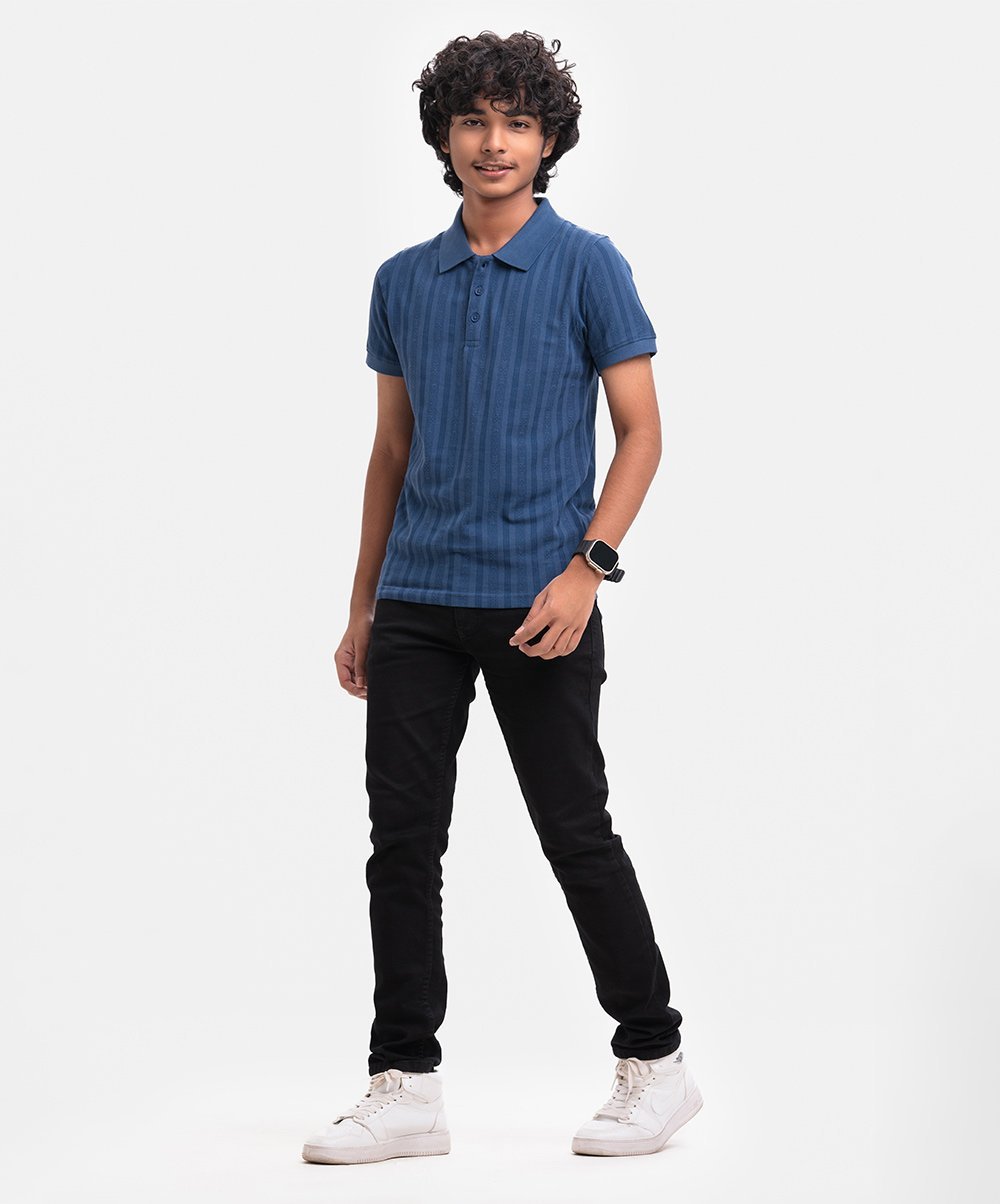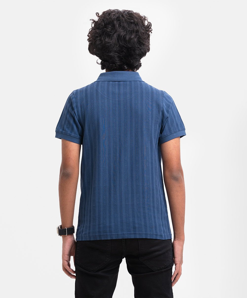 Blue Cotton Short Sleeve Polo