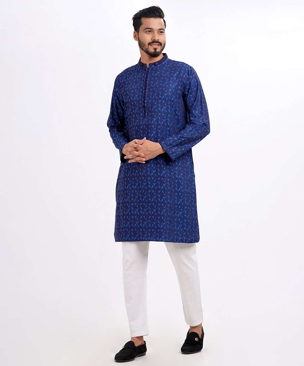 Blue Fitted Jacquard Panjabi