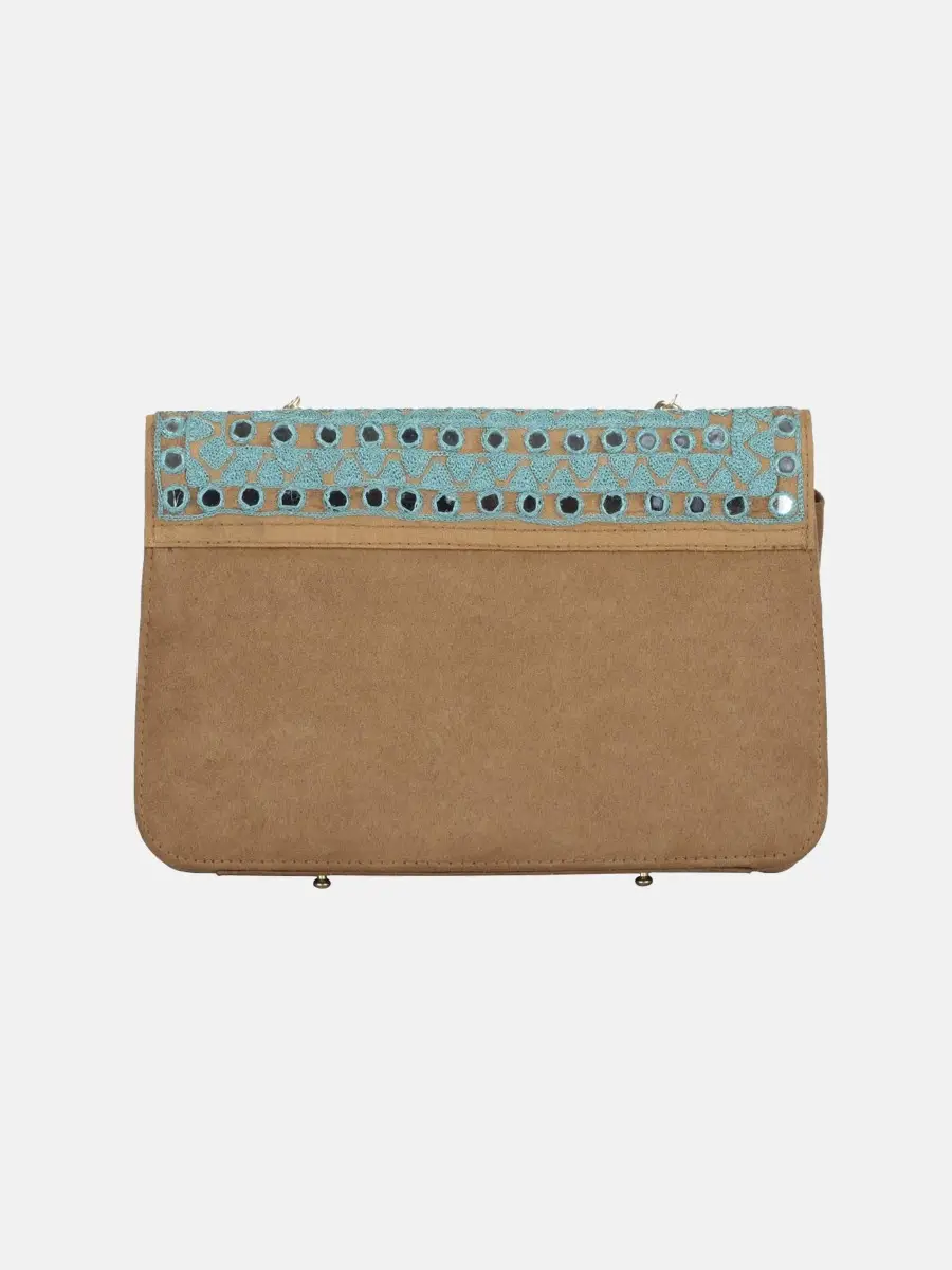 Brown Embroidered Velvet Bag