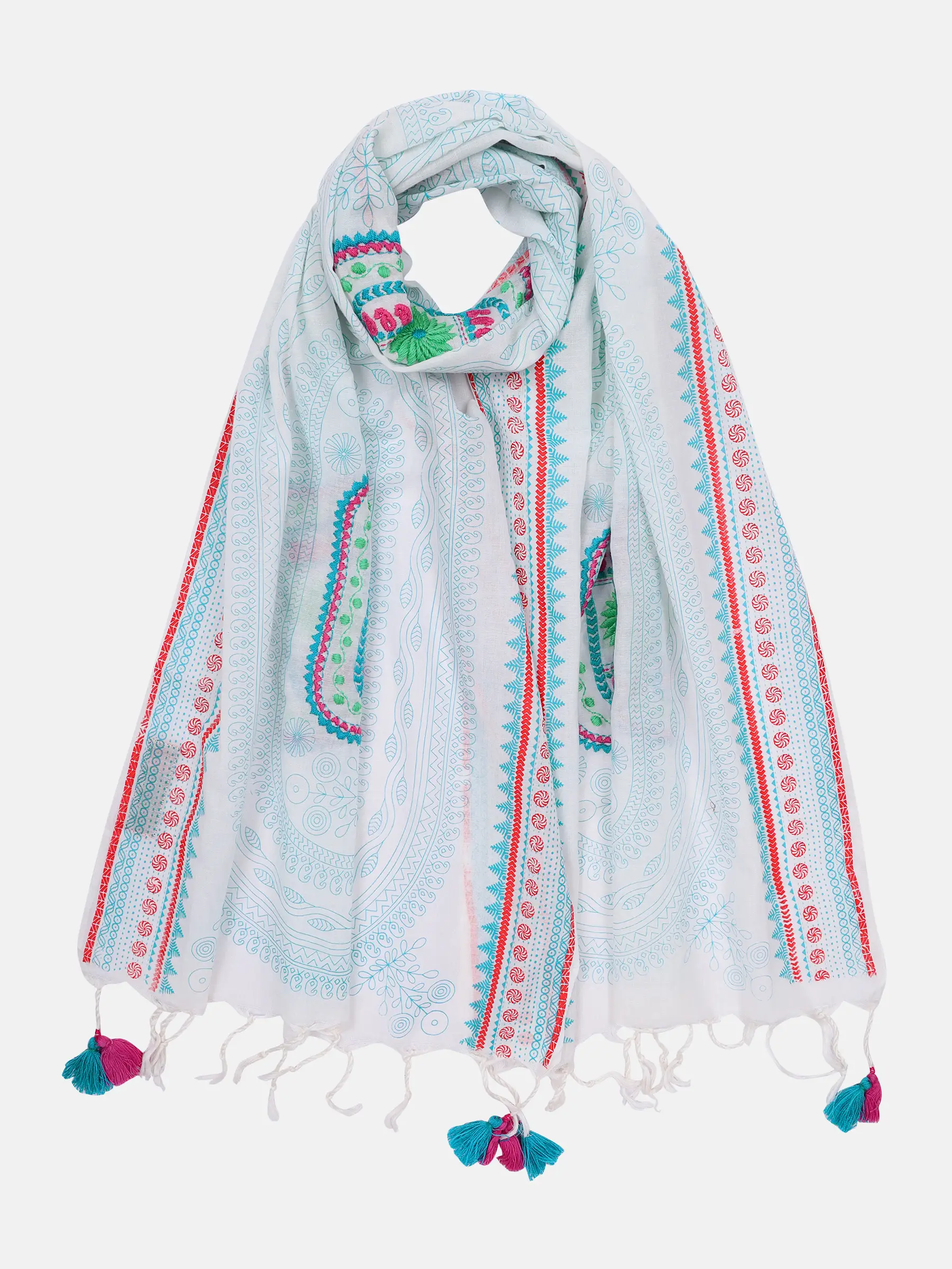 White Embroidered Handloom Cotton Ethnic Scarf
