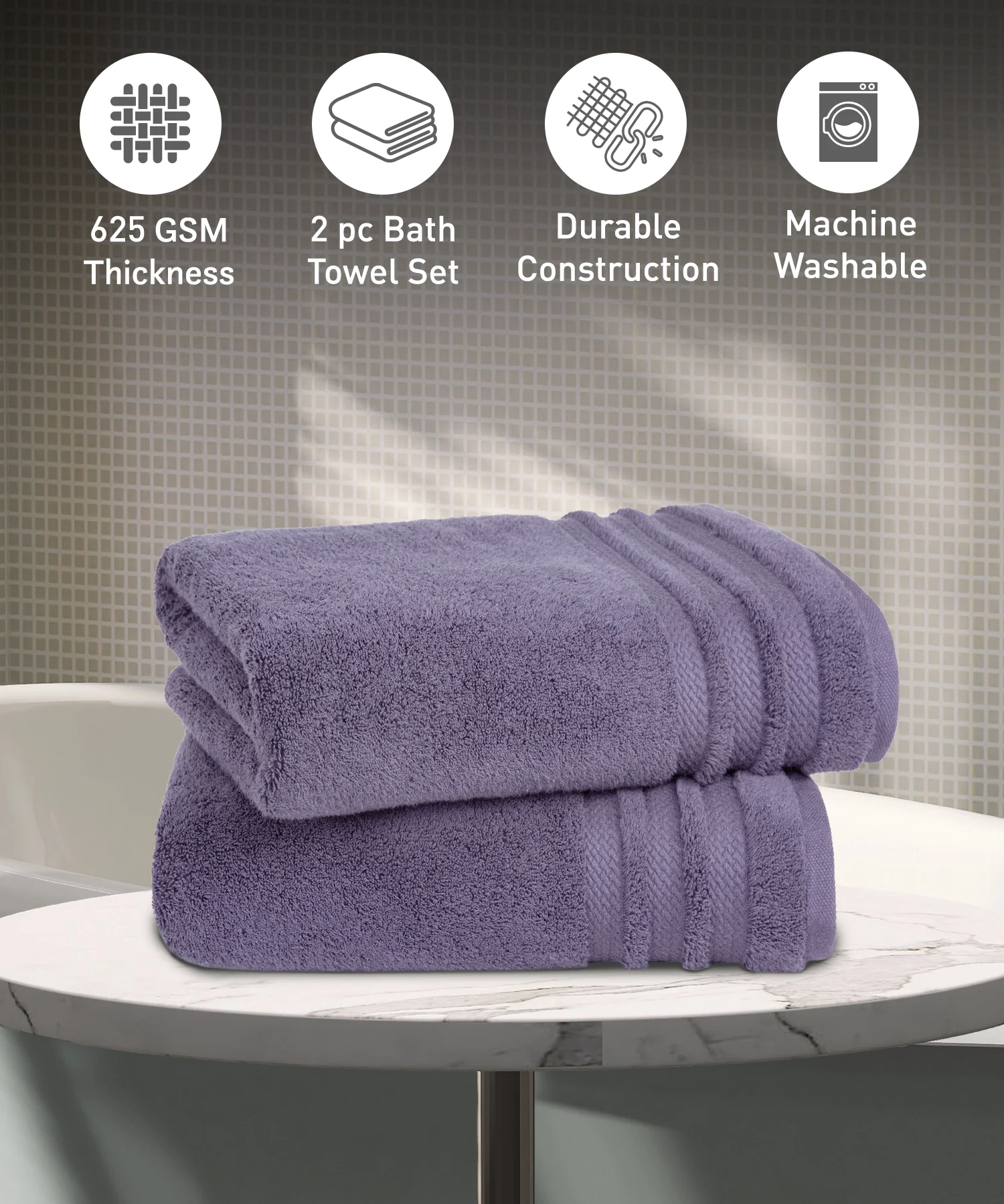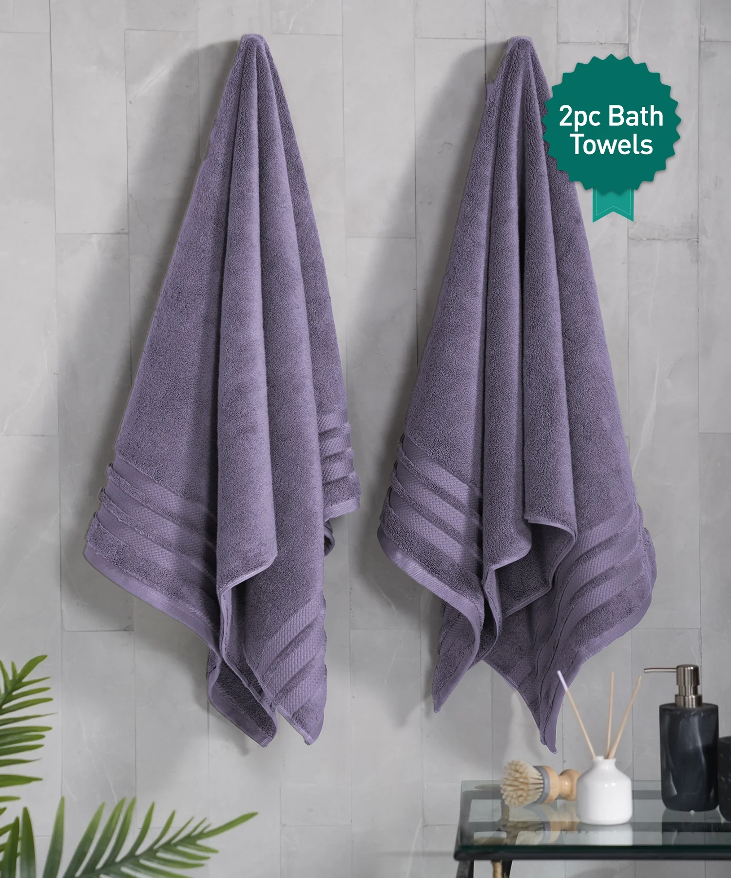 Luxury 2 PC Bath Towel Set, Purple|625 GSM Cotton|Anti Microbial