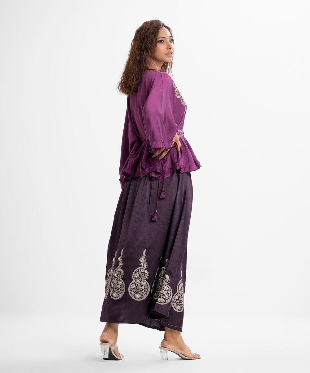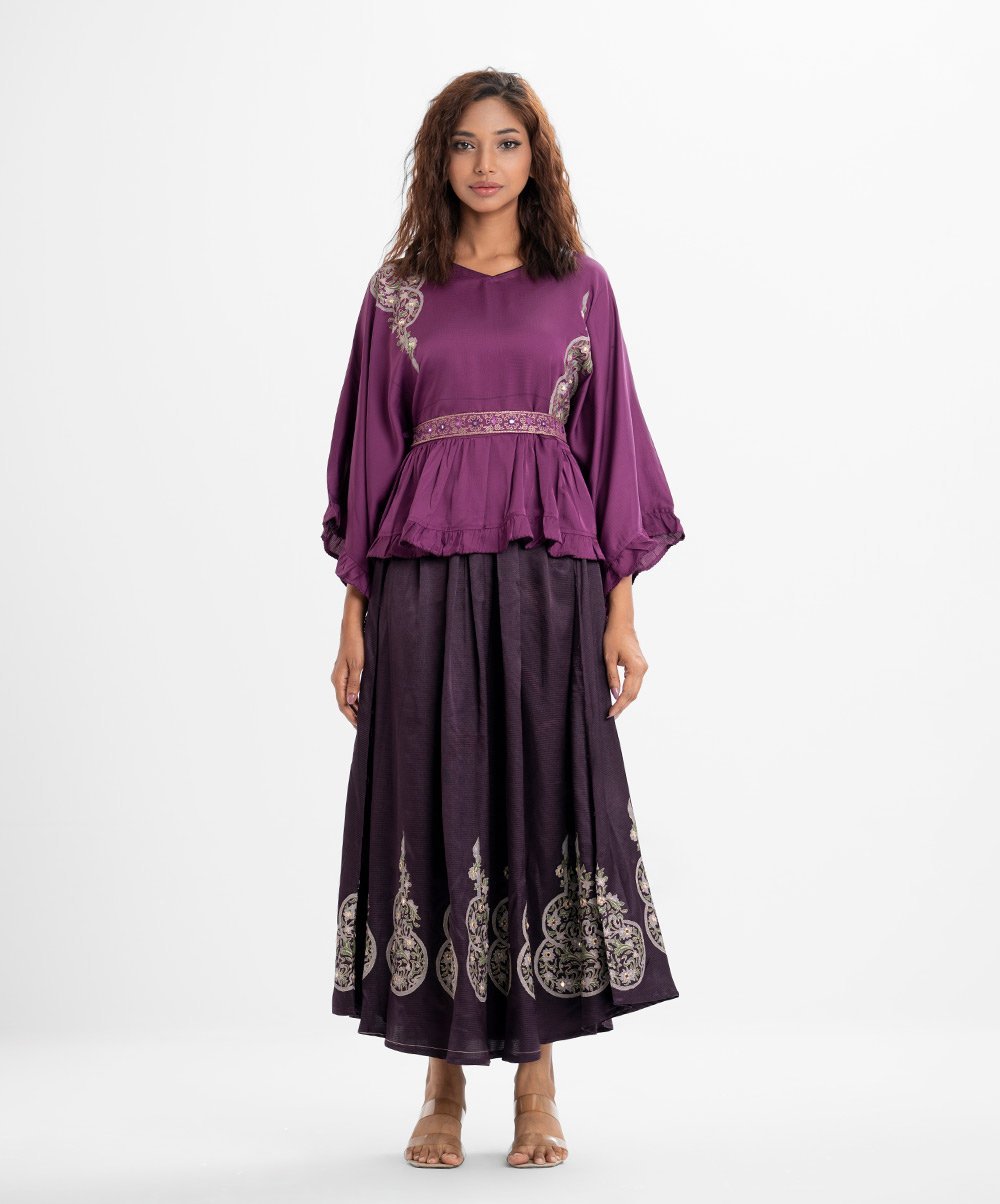 Purple Crepe Skirt Top Set