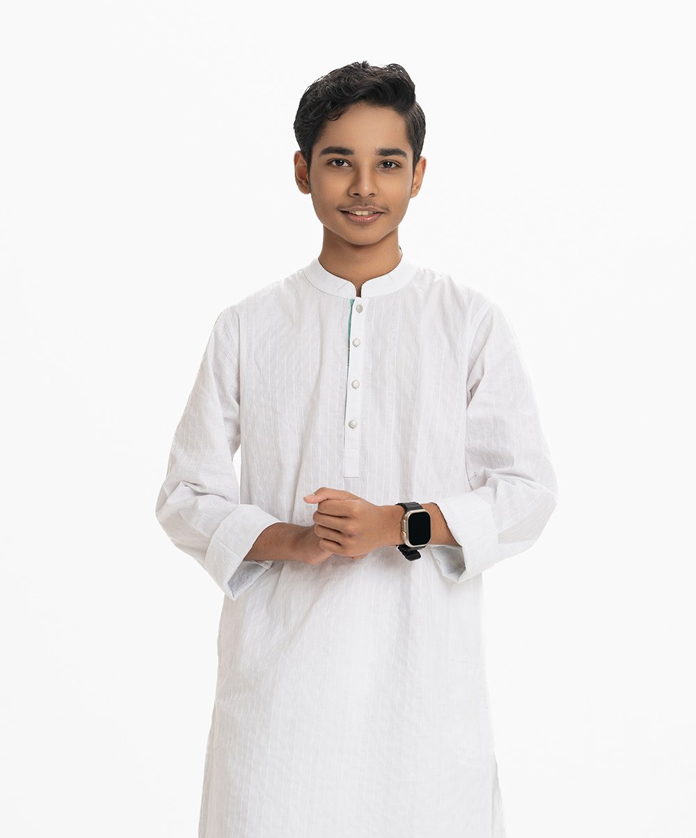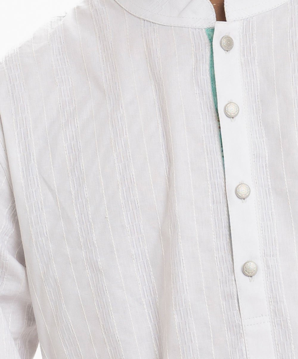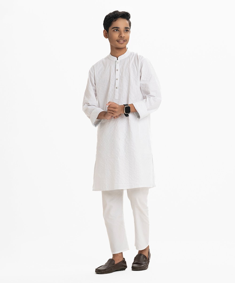 White Textured Cotton Panjabi